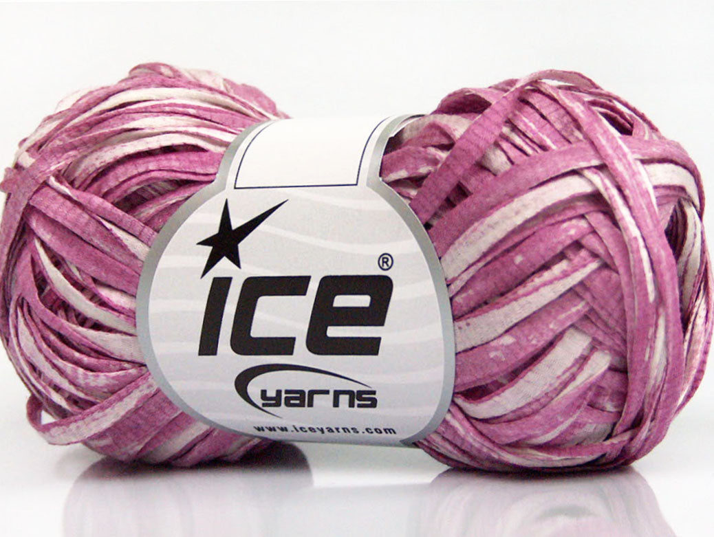 Lot of 8 Skeins ICE COTTON TAPE PRINT (100% Cotton) Yarn Orchid White