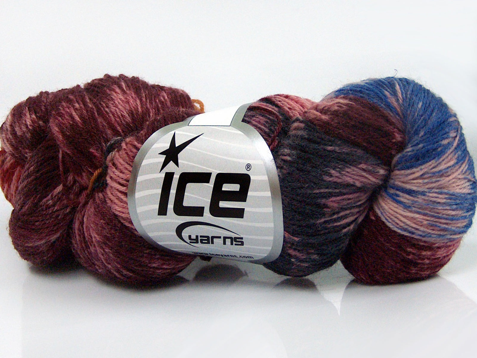 Lot of 4 x 100gr Skeins Ice Yarns HAND DYED SOCK YARN (75% SuperWash Wool) Yarn Burgundy Shades Grey Blue